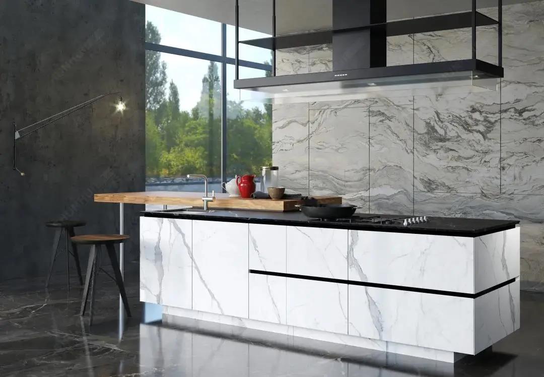 意大利原产进口的高品质12mm岩板,优雅与实用之间的完美平衡。Black Diamond 黑钻石 是高端橱柜台面乃至厨房装饰的全新颜色应用,只为现代厨房设计而开发的新型岩板。