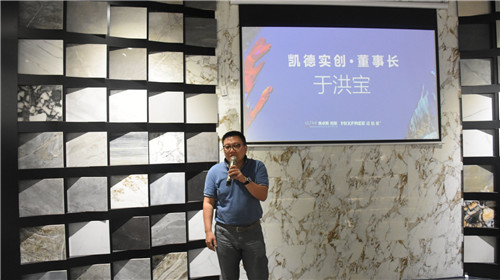 凯德实创董事长于洪宝在此次发布会上率先致辞,阐述了岩板·瓷砖行业的现状和企业升级、品牌发展战略的前瞻性见解。