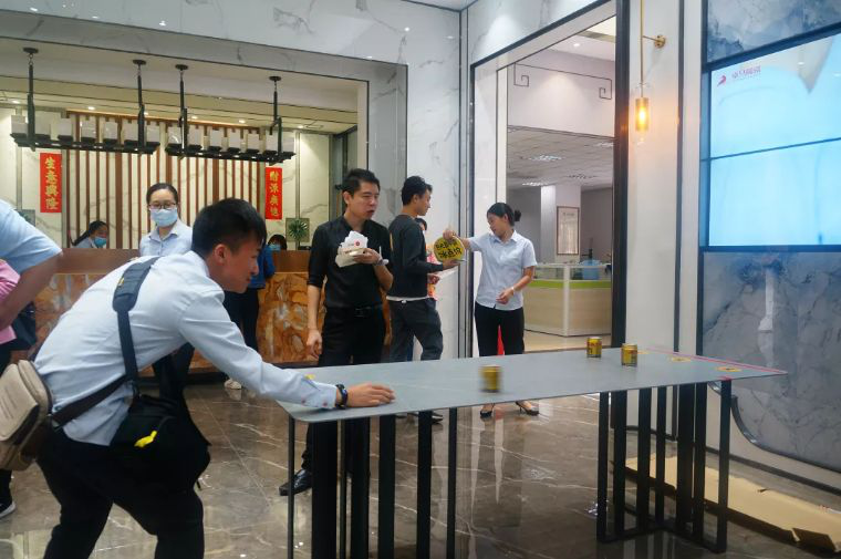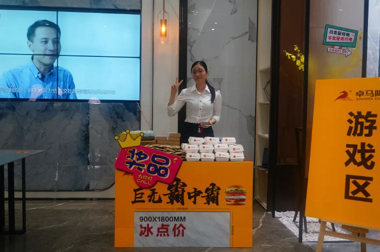 10月19号!卓马展厅迎来了一批重量级贵宾,众多媒体朋友及来宾参加卓马巨无霸中霸系列900X1800mm新品发布会!参与“寻‘霸’之旅”活动,一起吃汉堡,一起玩游戏,一起打卡升级展厅和了解900X1800mm冰点价,赢取千元现金大奖!