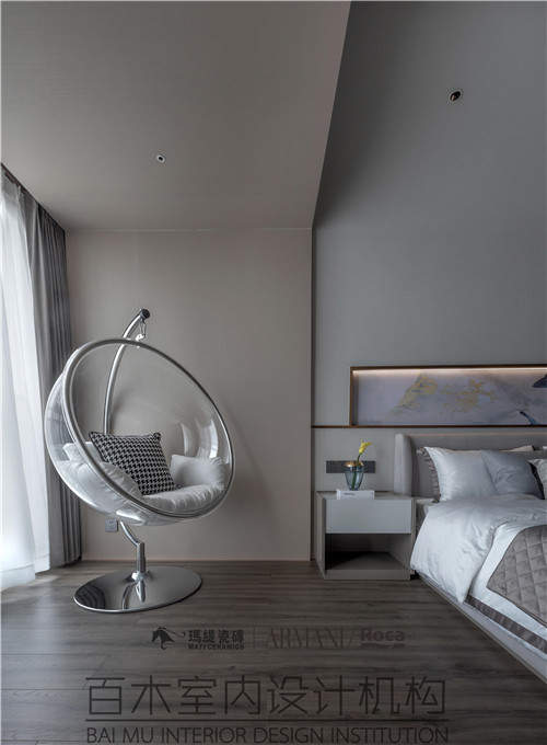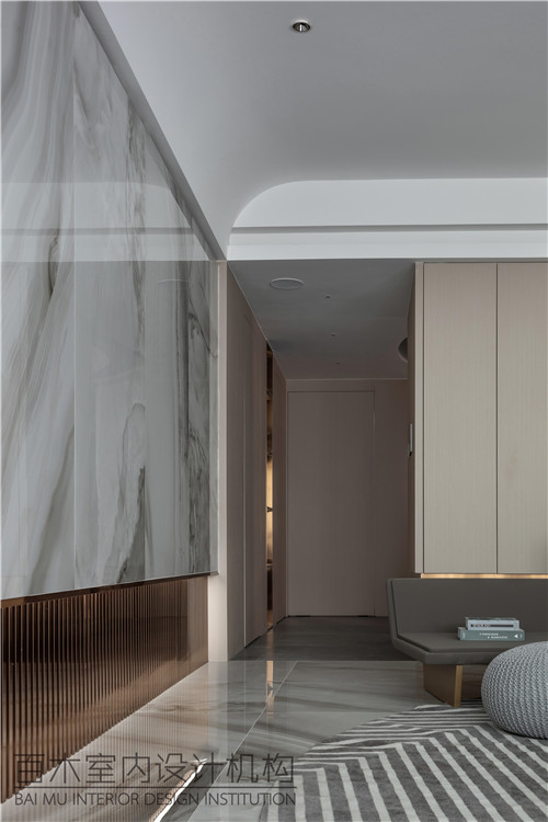 本案定位为现代艺术混搭风格,以高级灰为主色调,局部点缀金属装饰,在大面积稳重舒适的中性灰色柔和色调基础的映衬下,构筑出曼妙时尚、简约大气的空间视觉效果,赋予人舒适、愉悦的空间体验。
