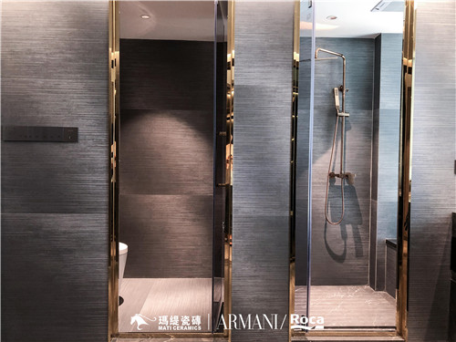 采用了具有科技感和时尚感的大师定制·龙系列瓷砖,用清晰的视觉化语言使不同材质相互交融,让灯光在瓷砖和玻璃上,或迷醉或温柔的点亮每个独有的沐浴时刻。