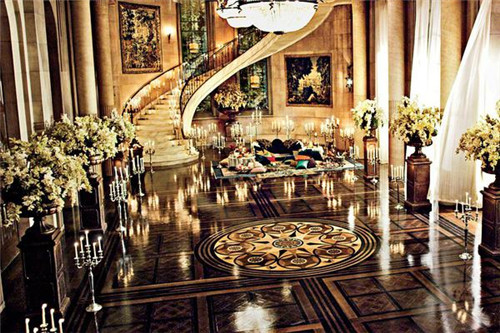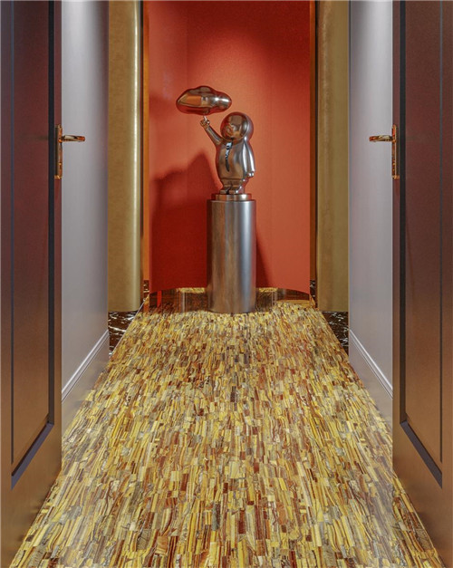 金、银、铜等金属色系是打造Art Deco风格华丽特质的常用色彩元素。将金色元素融入地板设计,并运用不同工艺技术,将金属的刚硬与闪亮,高调地充斥整个空间。