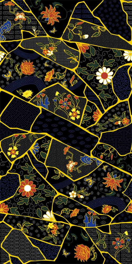 这款金缮珐琅灵感来源于故宫博物院珍藏的掐丝珐琅花卉纹筒式花盆,设计师采用“金缮”工艺手法进行图案重组设计,制成了由多种色彩和形状组成的、展现手法超凡脱俗的、寓意吉祥的作品。