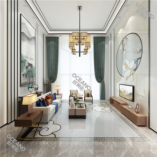 欧神诺新中式客厅案例分享,回归淡然,远离喧闹