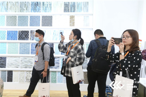 活动最后,主办方组织现场来宾参观了特色精品专区全新展厅。在特色精品专区中,我们深刻感受到马赛克不再拘泥于传统的表现手法,以粗粝裸露、古迹斑驳的低饱和色度砖墙来诠释当下最流行的性冷淡风格,在展现冷峻低奢的同时融入阳光般的柔和视感,唤醒了当下设计的热情。