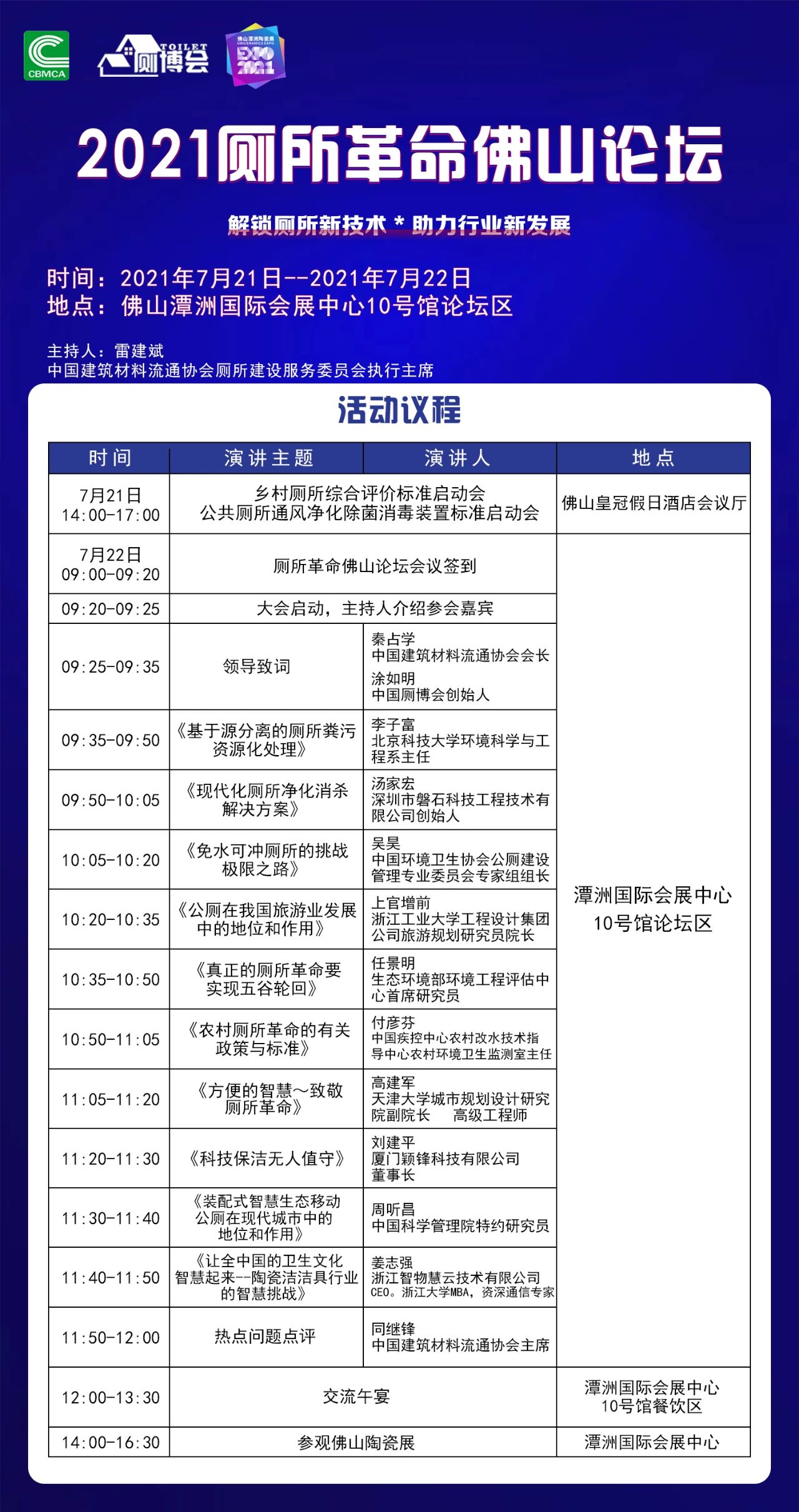 会议围绕智慧公厕建设、社会公厕管理、公厕创新设计、以商养厕等厕所建设改造等内容,结合佛山当地厕所革命实际痛点与需求,邀请国内知名专家、学者、政府领导暨企业家,共同探讨公厕建设管理发展方向,发表高新技术和厕所革命研究成果,为推进厕所革命进程,提高公厕管理和服务品质提供理论和技术支撑。