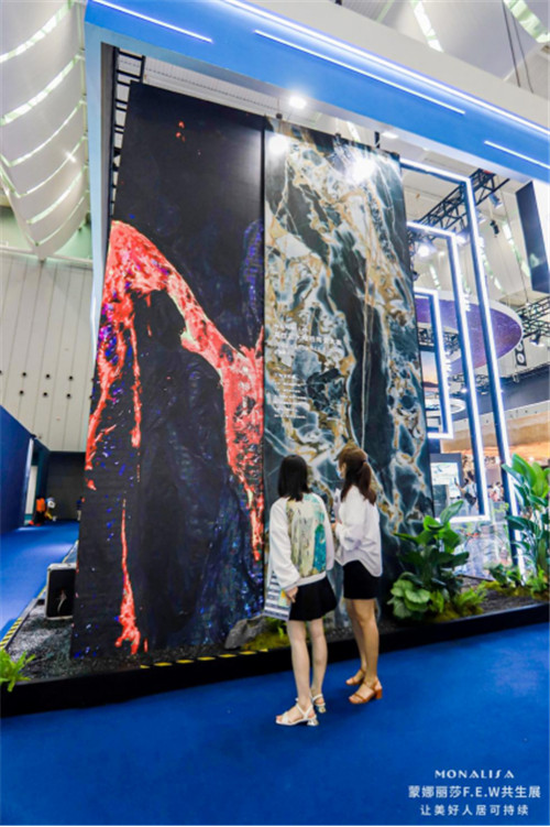 在此次展位上,蒙娜丽莎的产品惟妙惟肖地演绎了充满神秘感的璀璨星空、展现来自地下一万里的熔岩涌动、遥望水天相接一望无际的太平洋海域,通过产品设计与自然的彻底融合,彰显蒙娜丽莎可持续理念的践行。与此同时,蒙娜丽莎独创“陶瓷与艺术、绿色、智能相融合的质量管理模式”,从材料,工艺和技术,再利用,产品形态来考量产品研发、生产流程的设计,从产业链的各个环节把控我们的产品生命周期,降低能耗和污染,最大化提高产品价值,以符合可持续发展的姿态造福人类。