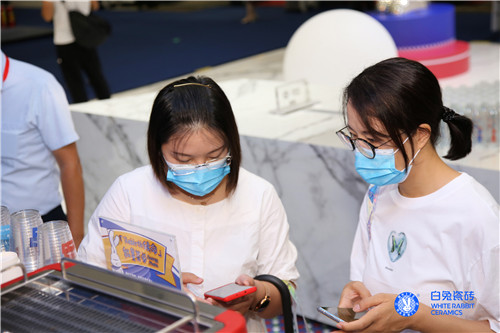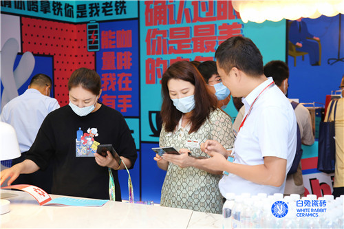 在浓郁的咖啡香气和耳目一新的“能量兔”中,白兔瓷砖以“高颜值”、“有个性”的创意,大胆“撩”起了现场参观者的热情关注,目之所及,人来人往,络绎不绝,俨然成为本届潭洲展新晋人气打卡点。