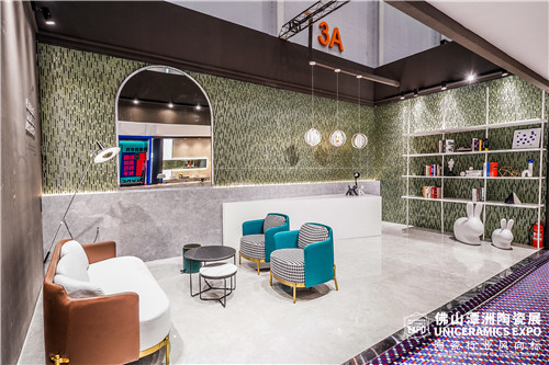 从而实现大砖做模块,营造简约、大气、灵动的空间效果;小砖做肌理,营造精致、立体、丰富的艺术美感,为白兔瓷砖展位注入崭新的空间灵感和场景体验,呈现出空间艺术设计的更多可能,现场吸引众多观众驻足拍照和咨询。