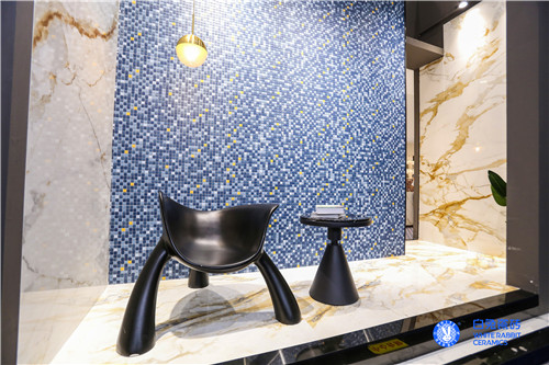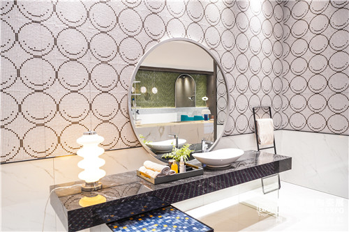 白兔瓷砖展位还通过不同空间场景的呈现,以触发想象力和创造力为宗旨,通过“墙地砖x马赛克”新颖的大小砖组合,充分发挥马赛克个性的艺术感与墙地砖大气的空间感相结合。