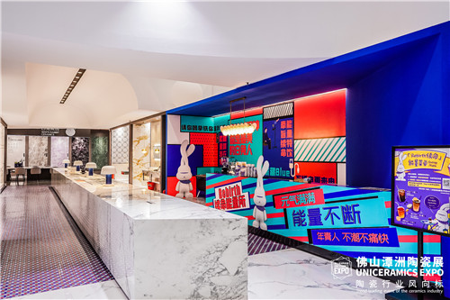 作为本届潭洲展备受关注的“实力派”参展品牌,白兔瓷砖以品牌焕新后的全新形象惊艳登场,3号馆近300㎡的展位以“设计无间”为主题,通过“墙地砖x马赛克”新颖的产品组合,探索空间艺术设计的更多可能。同时结合品牌超级IP“能量兔”,充分展示出白兔瓷砖更具活力和魅力的品牌内涵。