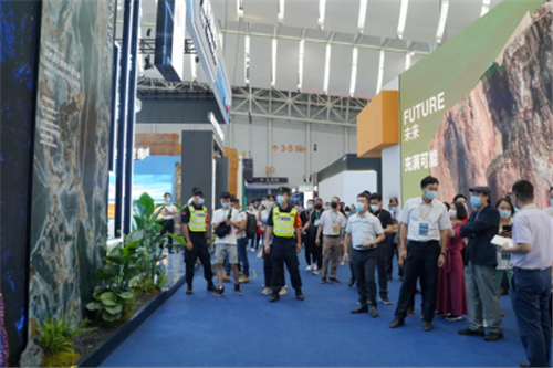 ▲碧桂园杨国强主席就被入口处矗立的6米巨幅岩板所吸引,不时驻足观看