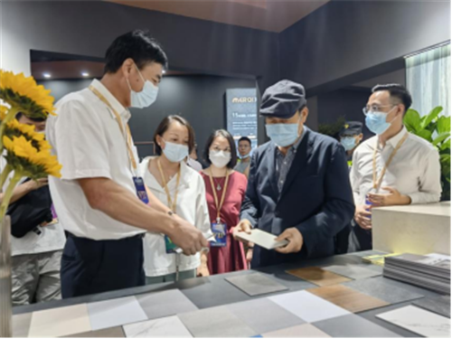 2021年7月23日,碧桂园集团董事局主席杨国强携采购、设计团队一行莅临佛山潭洲陶瓷展——“蒙娜丽莎F.E.W共生展”,蒙娜丽莎集团董事、副总裁邓啟棠等领导陪同参观交流。