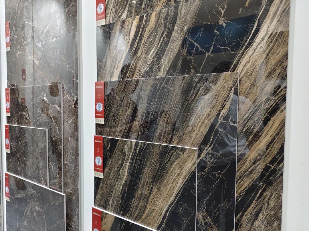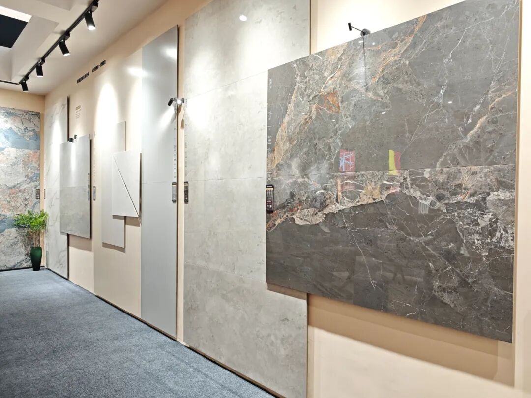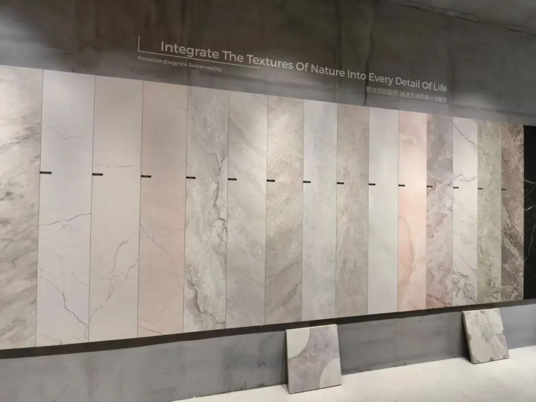 箭牌展示了全新的800×1600mm黄金规格产品“宋境”系列和“金丝绒”系列。
