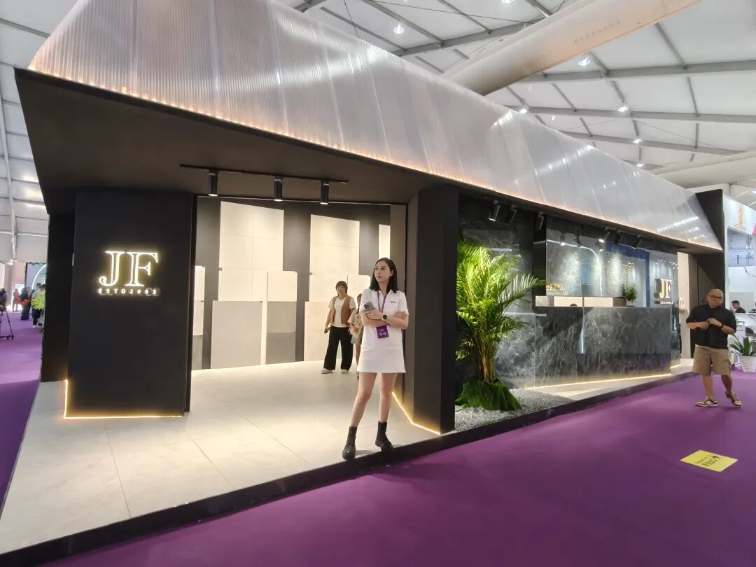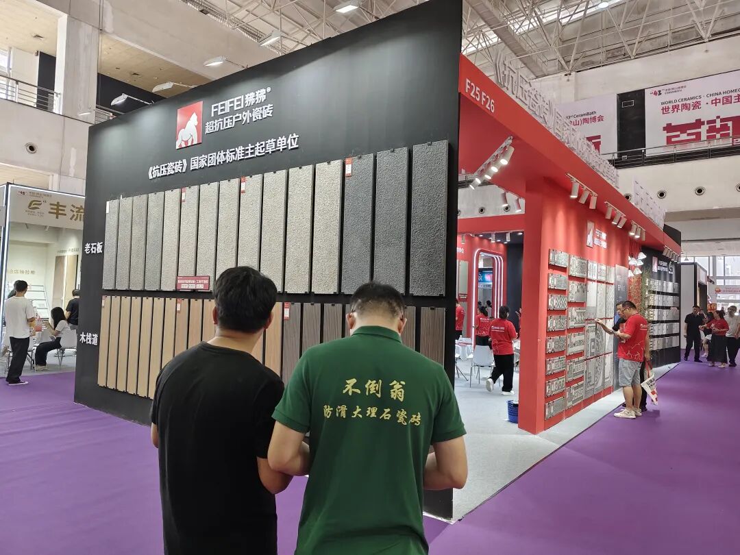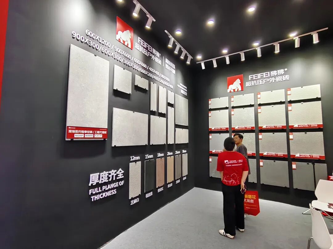 在展位核心区,荔枝面全通体、榫卯结构石英砖、庭院砖、老石板系列集体亮相,针对不同空间需求。