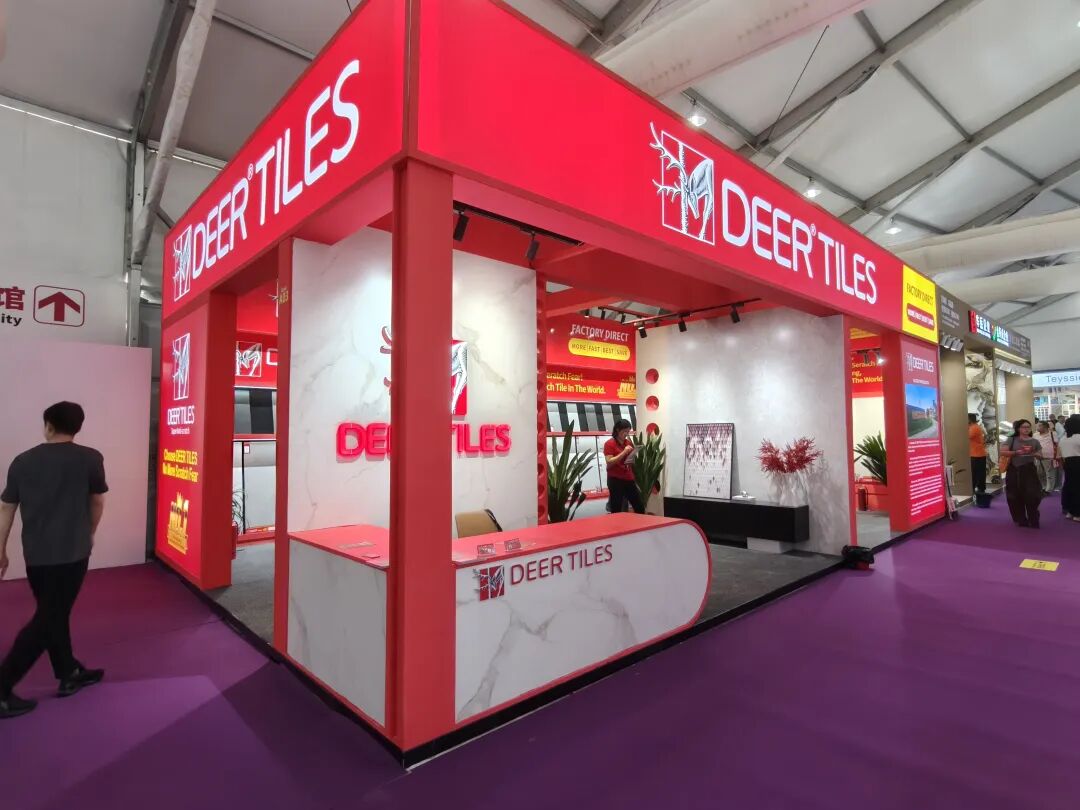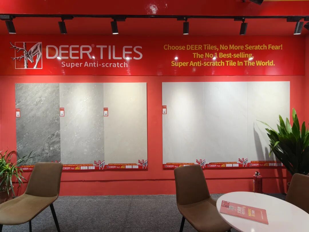 全球超耐磨瓷砖销量第一的大角鹿,是中国瓷砖出海的探索者和成功实践者。其国际展馆主要展示了超耐磨、超抗污等超强性能产品,其中的洞石等产品为子母配套,覆盖600×1200㎜、300×600㎜、600×600㎜多个尺寸,受到海外客商的一致好评。