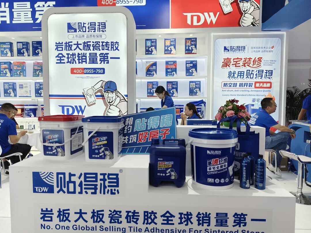 贴得稳在G11展位带来了瓷砖贴地宝、全效瓷砖背胶、全能型铺装粘贴密封结构胶等岩板大板瓷砖胶等产品,这些产品专注解决岩板大板粘贴难题。