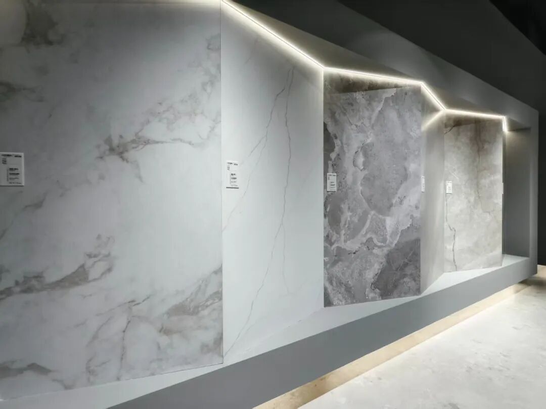 鲲鹏重磅带来了金丝绒•臻白岩板、超白坯系列和奢石系列新品以及其他拳头产品,涵盖800×800mm、750×1500mm等众多规格。
