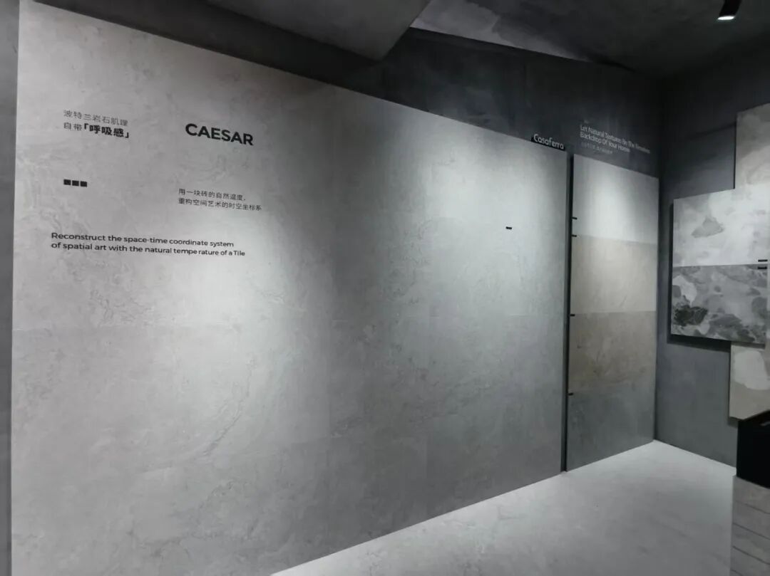 此次展会,卡布奇诺以“地表之上”为主题发布新品,涵盖砂岩、理石、水泥、木纹等自然元素材质,一石多色彩、多纹理、多质感选择,规格有750x1500、1800x800、2000x1000、1200x600、2700x900mm等。