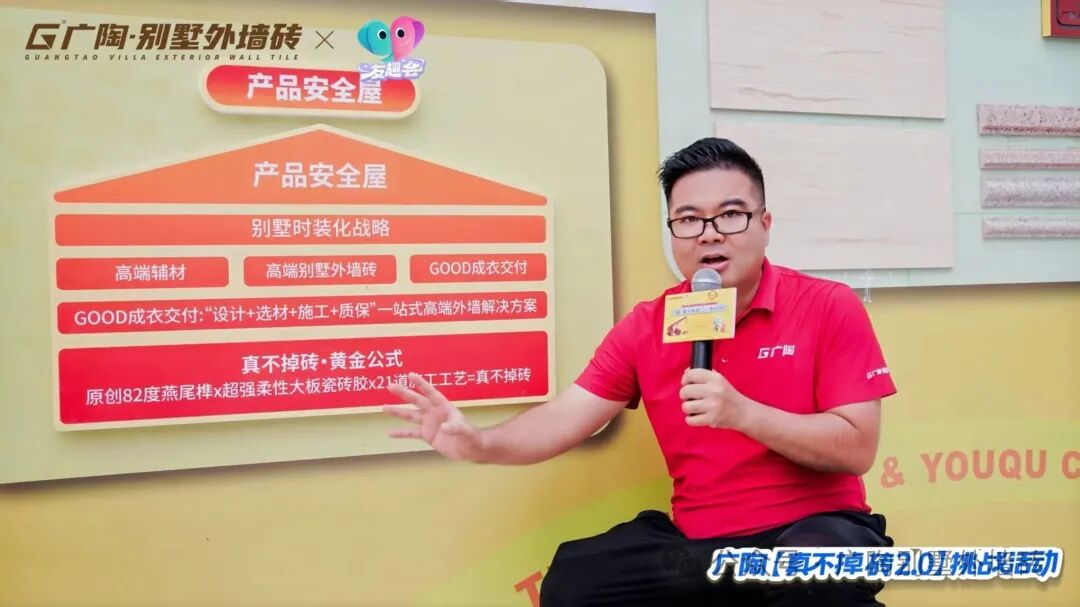 在追求外墙建筑美观与安全并重的今天,外墙砖脱落问题一直是行业的痛点!本次线上线下联动的“真不掉砖2.0”产品测试挑战活动,既彰显了广陶作为外墙砖领域领导者的责任担当与行业魄力,更以直观的现场测试实验,向业界同仁与广大消费者实力印证:广陶别墅外墙砖品质过硬、安全不脱落,辅材—广陶超韧弹性百粘胶粘结力强劲、稳固可靠,用实打实的测试结果筑牢产品口碑与市场信任。