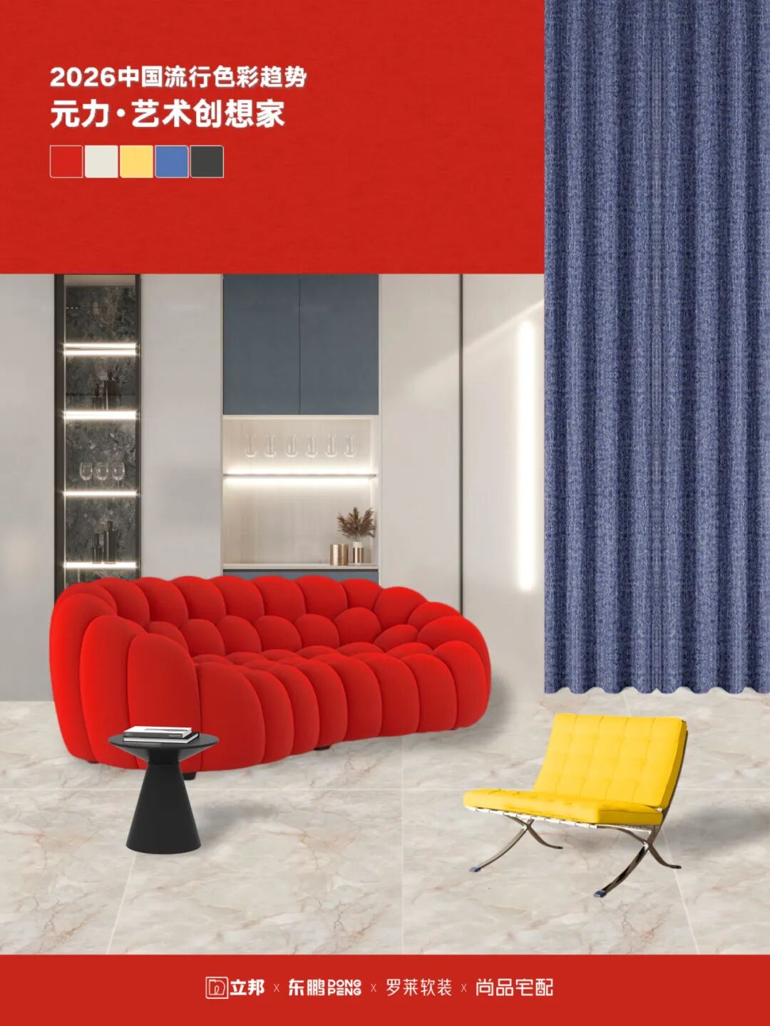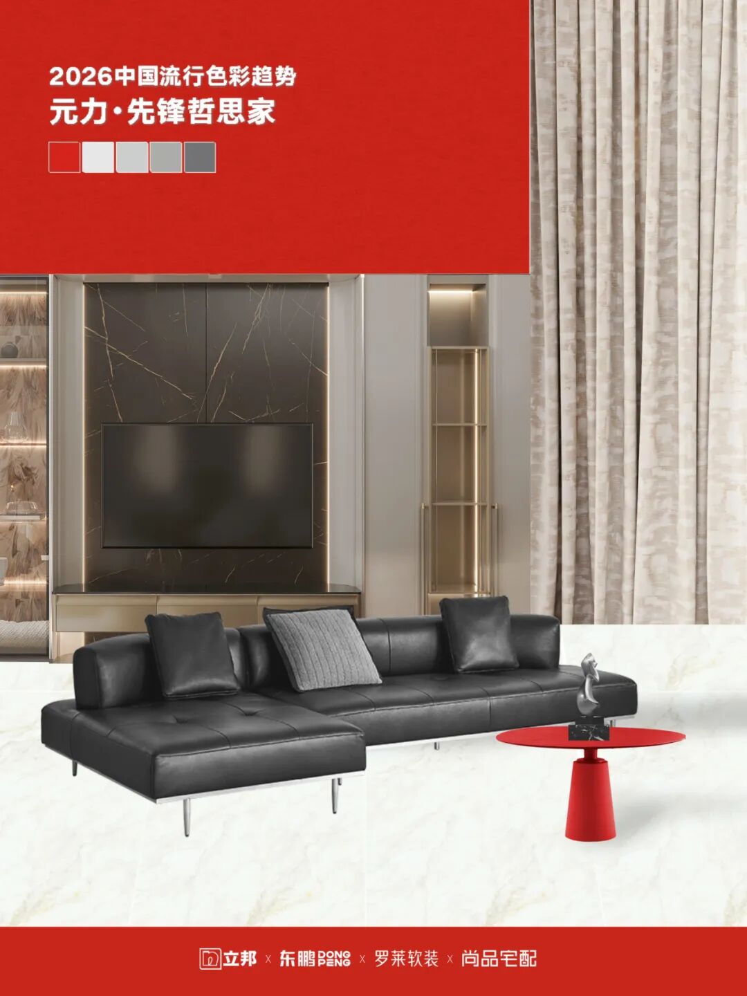 当家居行业的趋势发布从“独白”走向“共鸣”,一场由东鹏深度参与的产业协同变革正在发生。近日,东鹏携手立邦、罗莱软装、尚品宅配联合发布《2026中国流行色彩趋势》,以“元力红”为纽带,首次打破单一品类界限,构建起贯通墙面、地面、家具、软装的色彩协同生态。