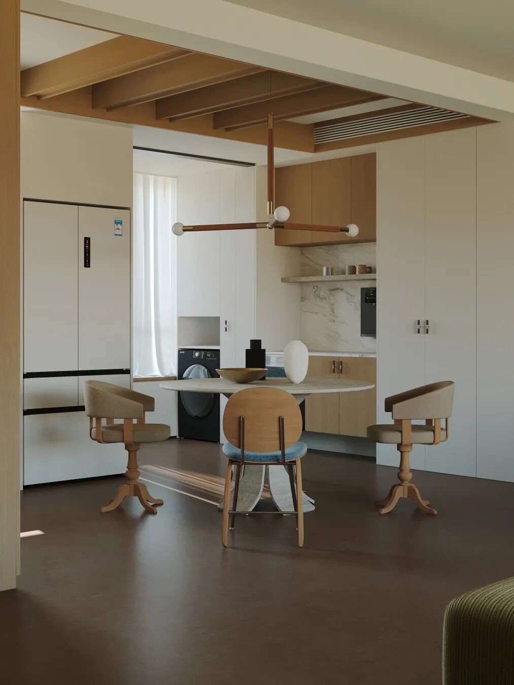作为本次趋势共创的核心参与者,东鹏基于深厚的产品底蕴与“人本设计”理念,主动承担起“空间基底构建者”的角色,将“元力红”的色彩情绪转译为真实可感的空间语言,打造成可焕活身心的家居能量场。