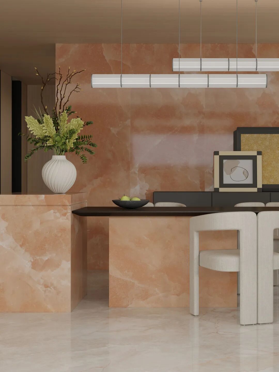 面对趋势落地挑战,东鹏以构建多样化空间基底为目标,始终秉持“美好空间,焕新生活”的品牌理念,积极参与趋势落地,将“元力红”的色彩情绪转化为具体的材质表达,通过“尊石系列”“净奢石系列”“尚木系列”“岩萃系列”“微韵石系列”等产品,将色彩趋势转化为可靠的空间基底,构建可焕活身心的“能量场”。