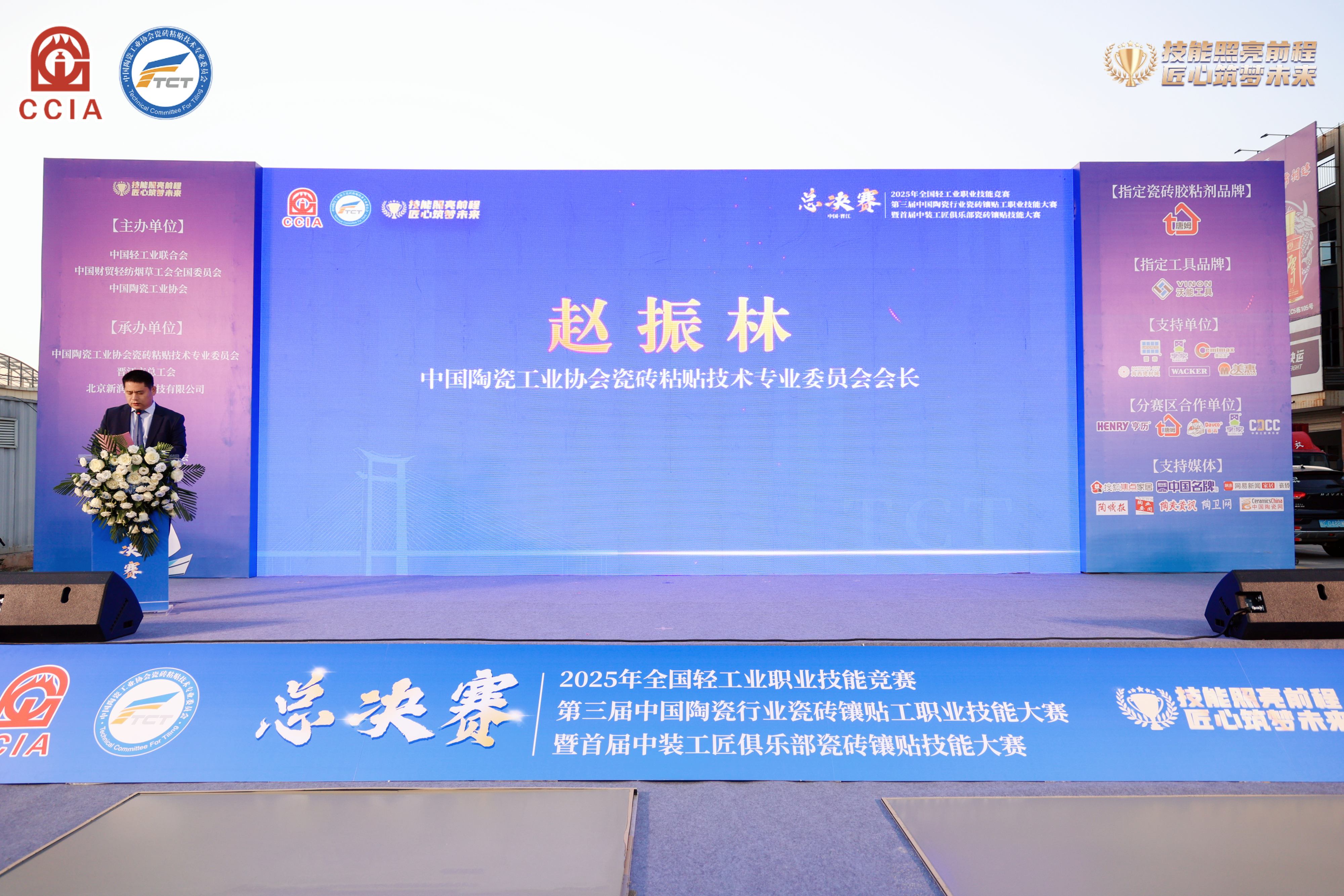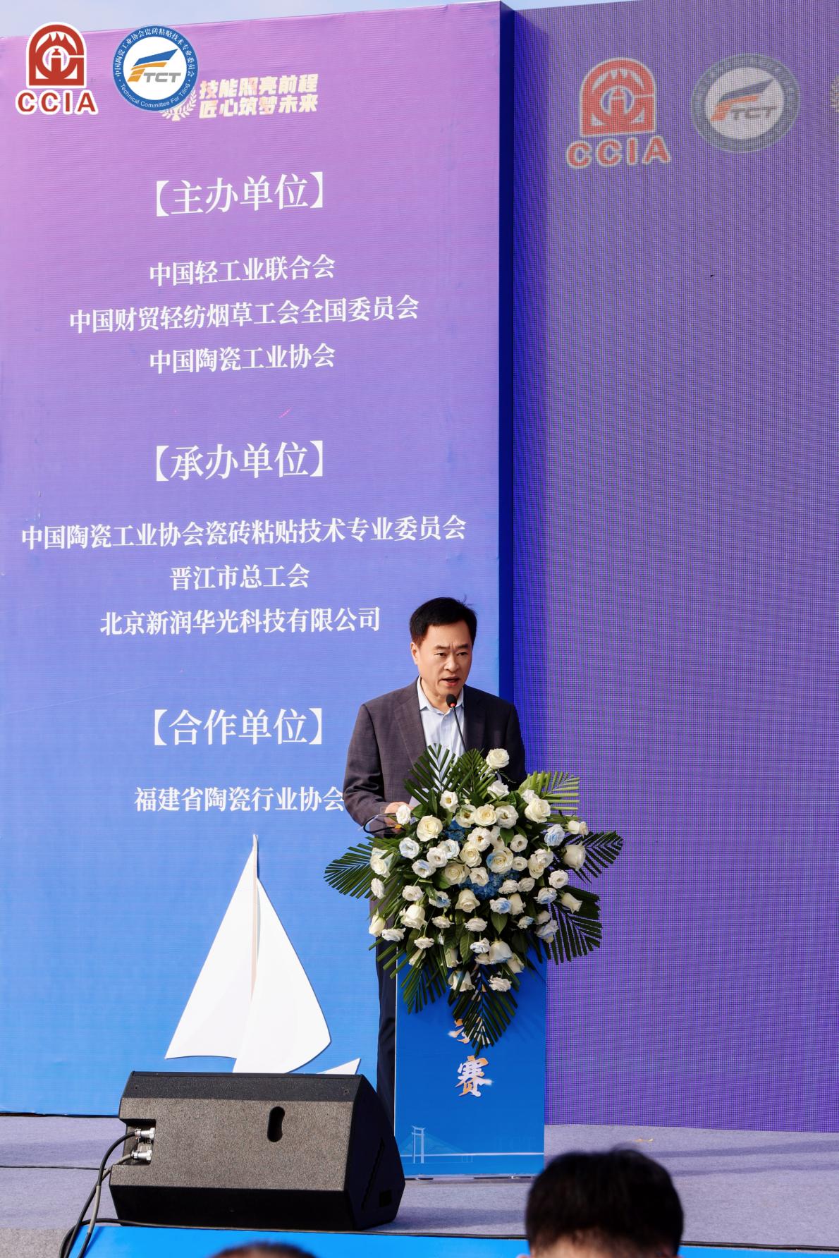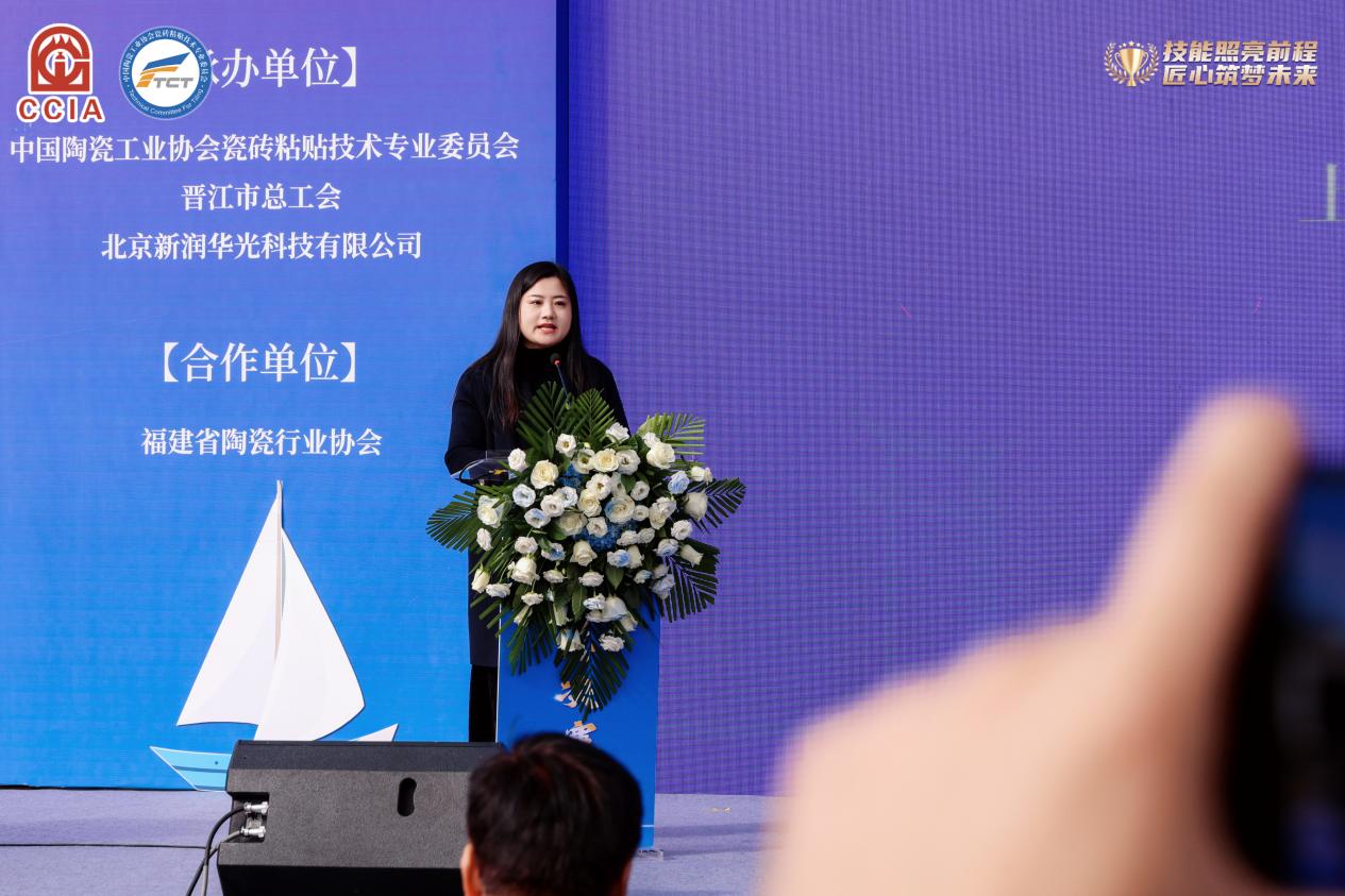 作为全国轻工业职业技能领域的重要赛事,本次活动由中国轻工业联合会、中国财贸轻纺烟草工会全国委员会、中国陶瓷工业协会联合主办,中国陶瓷工业协会瓷砖粘贴技术专业委员会(简称TCT)、晋江市总工会承办,由中国陶瓷工业协会瓷砖粘贴技术专业委员会会长赵振林主持。