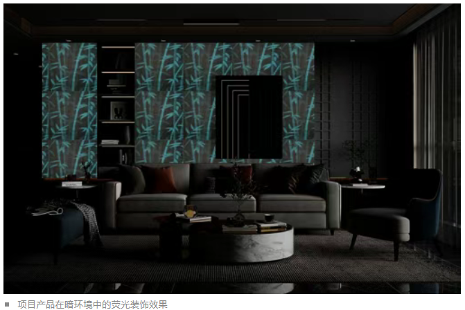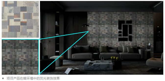 令人瞩目的是,该项目首次将余辉荧光材料、数码喷墨图案与星光幻彩干粒三者协同应用于建筑陶瓷砖,突破了传统瓷砖单一装饰属性。项目的“光照星光幻彩+暗光荧光余辉”双效陶瓷砖产品,实现双场景的动态装饰效果,填补了陶瓷砖在夜间功能性装饰领域的空白,经济和社会效益较为显著。