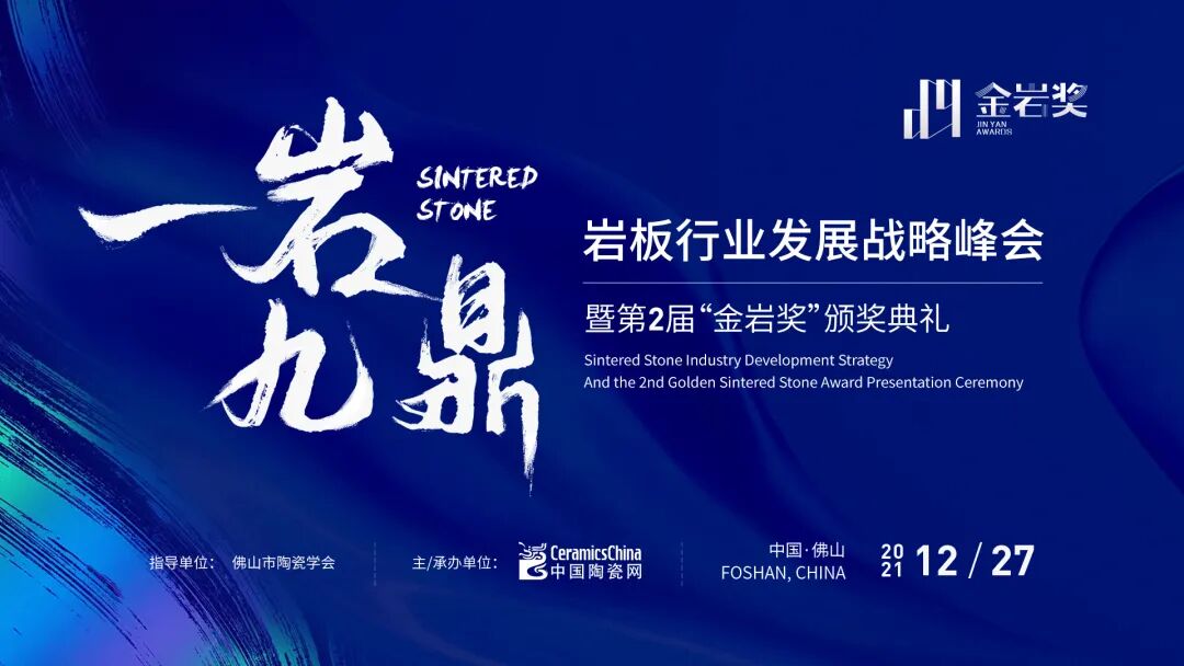 2021年12月27日下午,由佛山市陶瓷学会指导、 主办和承办的岩板行业发展战略峰会暨第二届“金岩奖”颁奖典礼以“一岩九鼎”为主题在佛山举行。设计&石材圈老炮、家居建材领域战略营销专家、头部岩板品牌代表齐聚一堂,探讨岩板的发展之道。