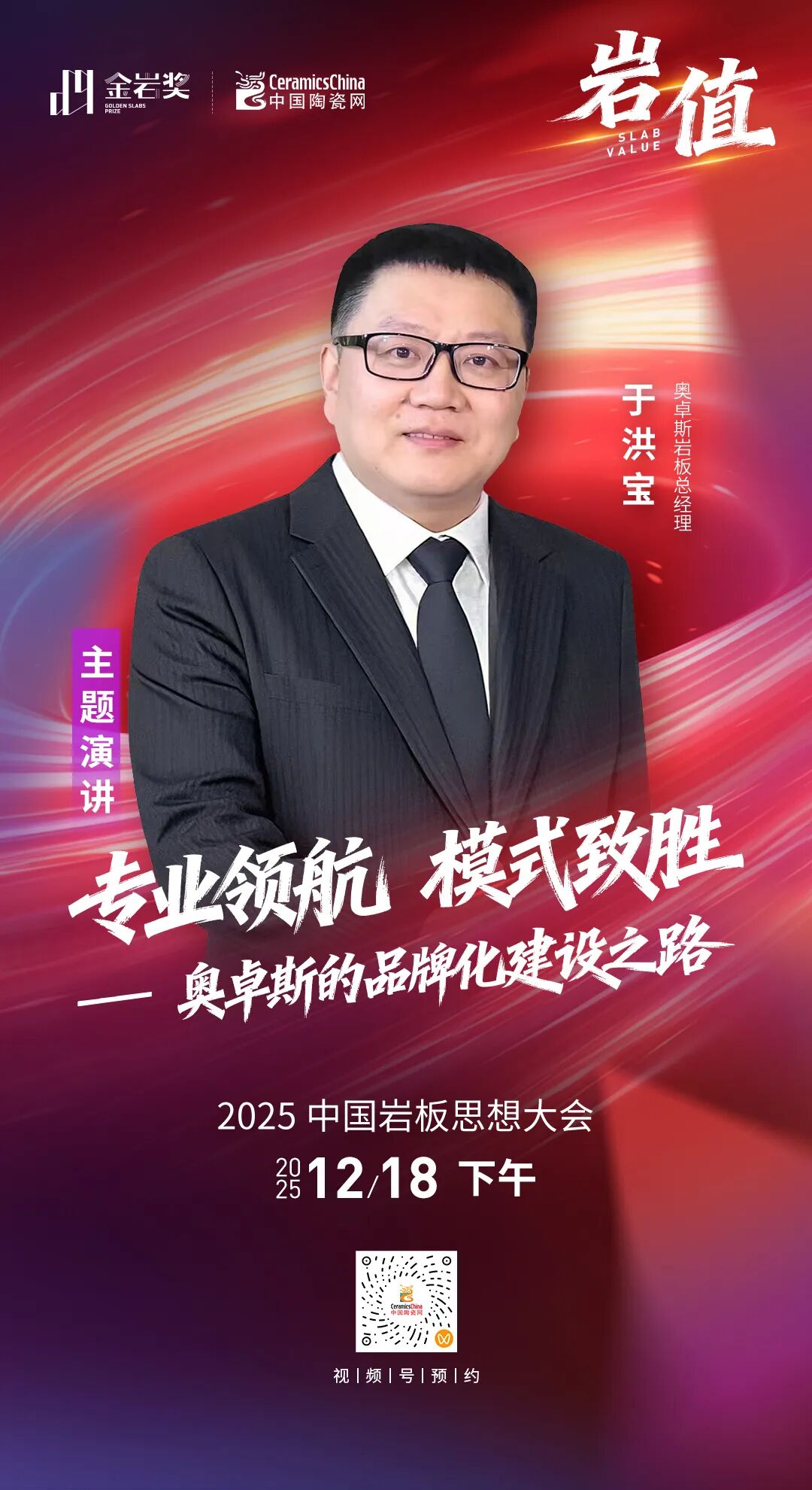 岩板品牌如何破局突围?奥卓斯岩板总经理于洪宝将发表《专业领航模式致胜——奥卓斯的品牌化建设之路》主题分享。