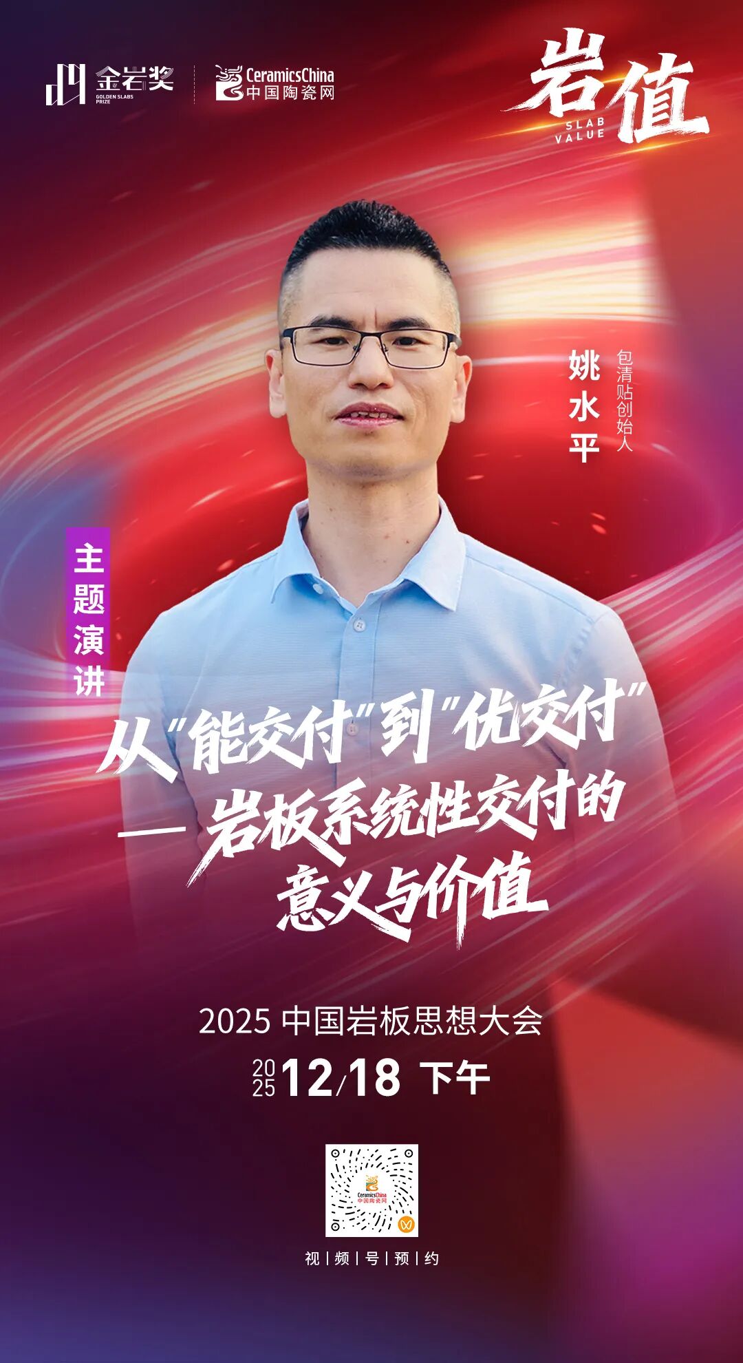 岩板交付如何实现进阶?包清贴创始人姚水平将发表《从“能交付”到“优交付”——岩板系统性交付的意义与价值》主题分享。