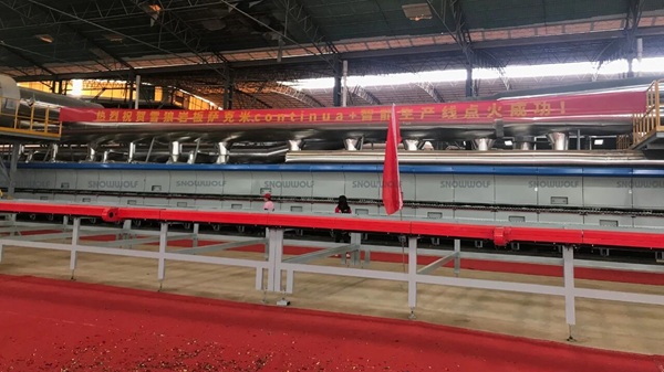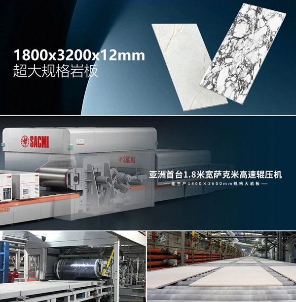 去年,在市场普遍低迷时期,雪狼瓷砖·岩板逆势引入全新生产线,这条生产线配备了亚洲首台萨克米CONTINUA+高速1.8米宽幅辊压成型设备,实现了生产能力的跨越式提升。据悉,该设备能最大支持宽度1.8米的岩板生产,厚度范围覆盖3-30MM,最高日产能达21460平方米。这条生产线的点火,使雪狼岩板一跃成为业内少数掌握如此先进生产技术的企业之一。