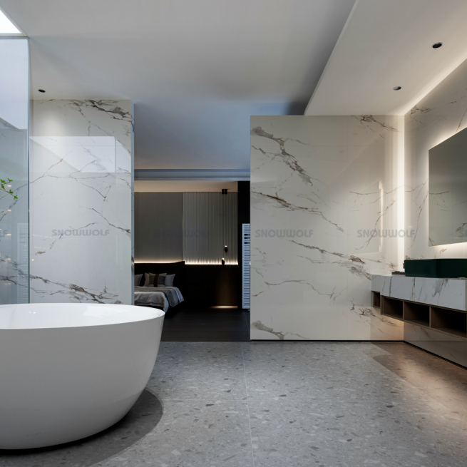 此外,雪狼瓷砖·岩板还推出了“时光釉”技术,通过10°—12°柔光处理,打造温润如玉的触感与低反光视觉体验,完美平衡美学与实用性。这些技术创新为岩板行业提供了“中国智造”的范本。