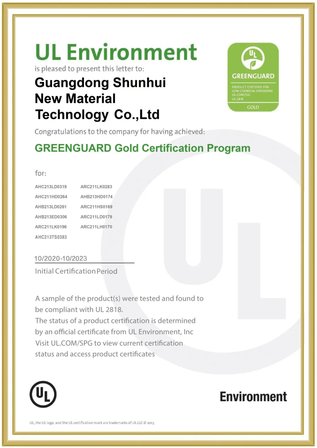 在短短几年的发展时间里,顺辉天成岩板相继通过了高新技术企业、专精特新中小企业、NSF食品级认证、UL绿色卫士金级认证、GQM能量管理体系认证、SGS检测认证等,为产品研发与生产提供了坚实的保障,同时也提升了顺辉天成岩板在市场的竞争力。