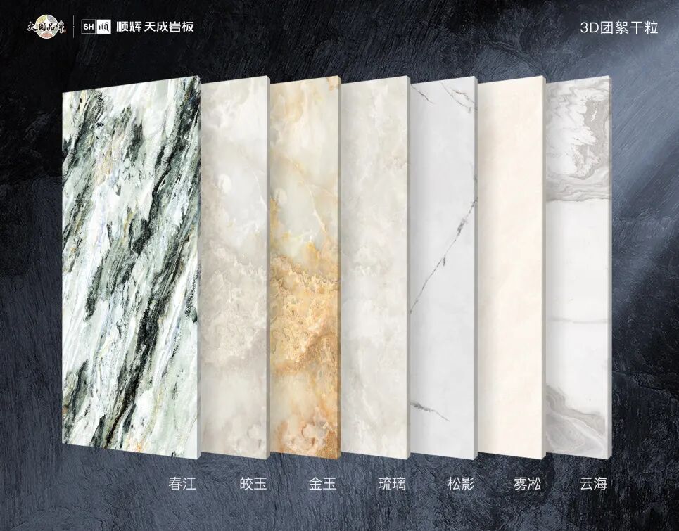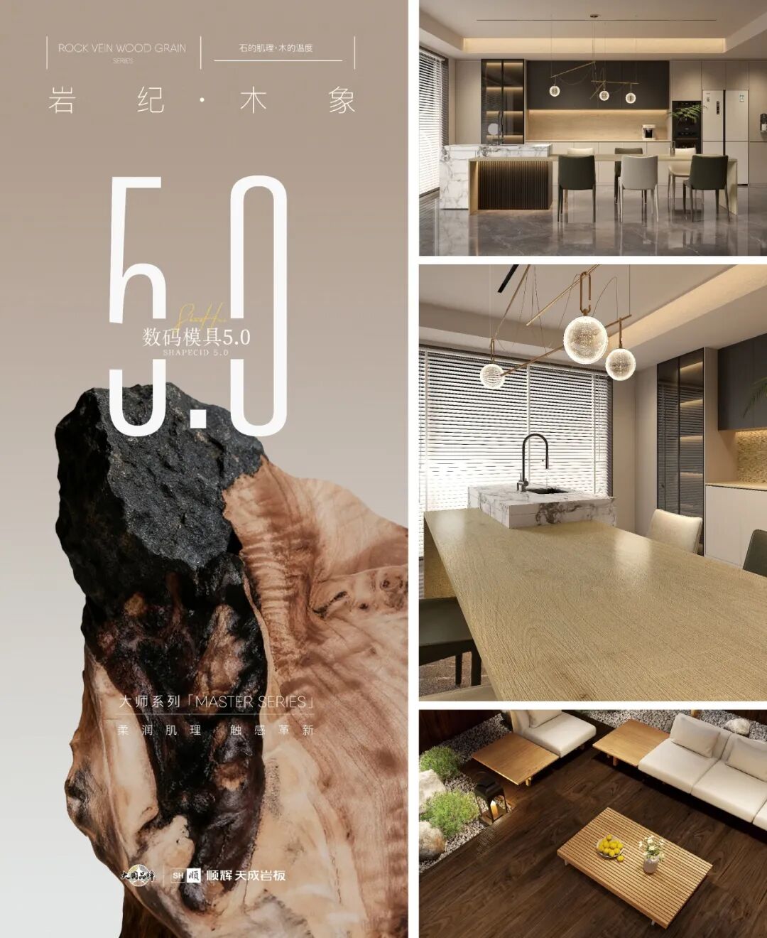 顺辉天成岩板《大师系列》包括岩纪木象与天工石意两大子系列,深度融合数码模具5.0、3D团絮干粒抛等前沿工艺,实现了岩板“肌理造骨”与“立体景深”效果的突破性呈现。该系列产品以技术还原自然之美,将石材的磅礴与木材的温润刻画得淋漓尽致,重新定义了高端岩板的美学与实用价值。