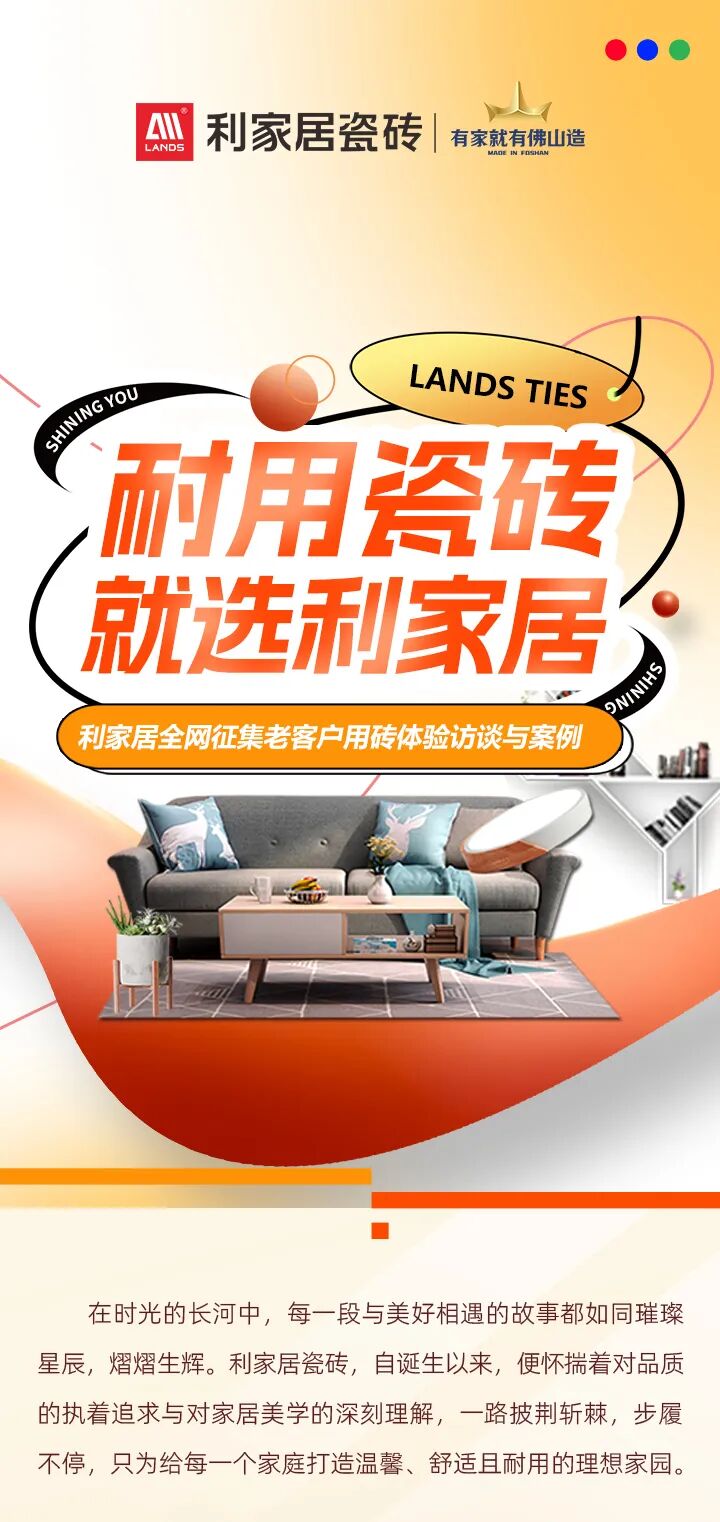 活动主题:耐用瓷砖就选利家居,利家居全网征集老客户用砖体验访谈与案例活动时间:7月14日-8月31日(共7周)