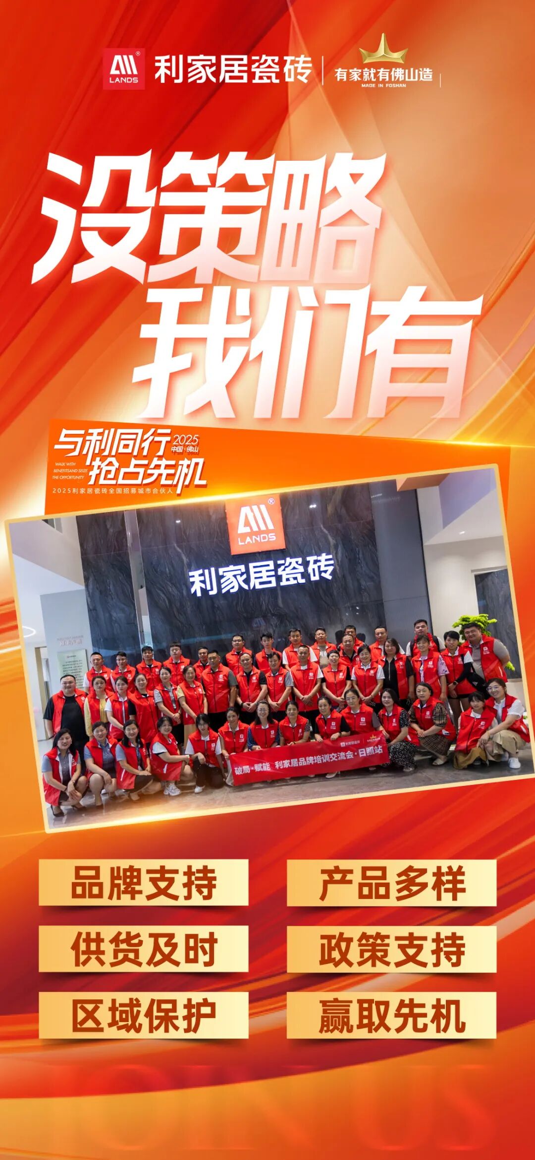 利家居瓷砖精心制定一系列扶持政策,从市场调研、店面选址到运营培训、营销推广,多维度精准赋能,重实效落地帮扶,确保厂商同频共振,携手共赢广阔市场。