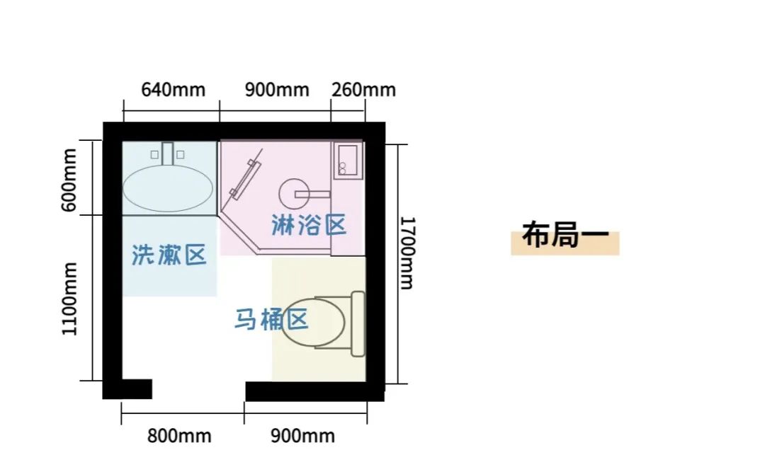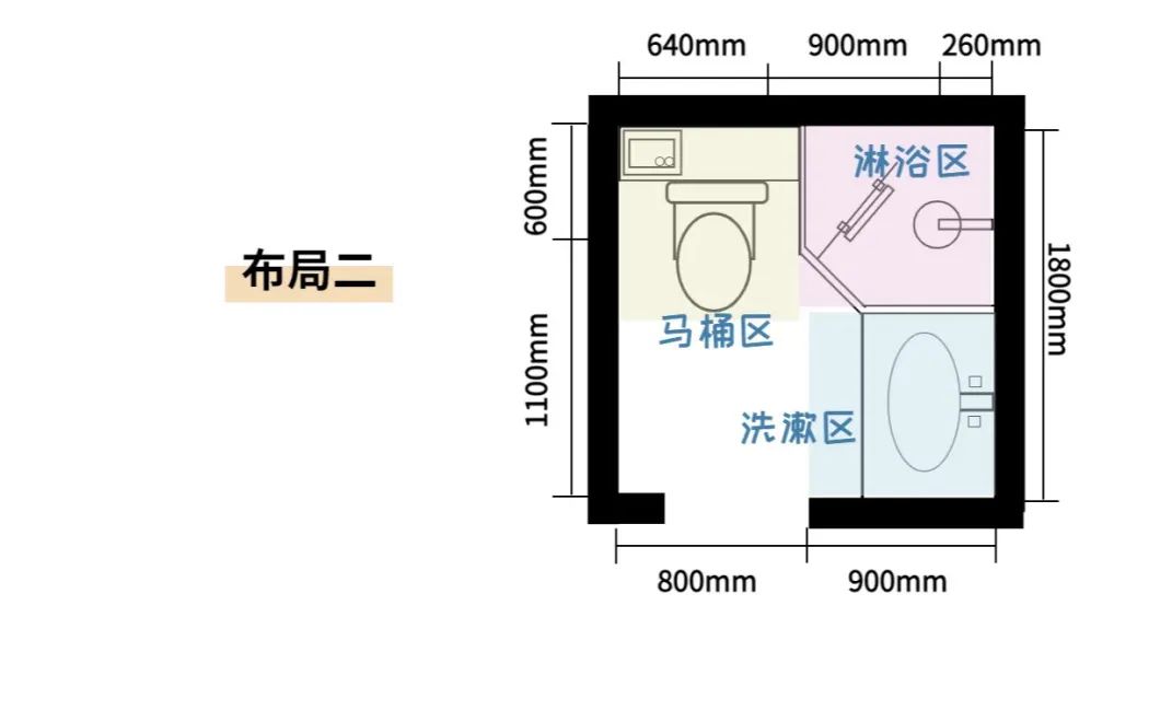 ①我们在淋浴的时候,动作幅度一般都比较大,首要考虑淋浴时可自由转身,所以至少预留900mm×900mm,要求舒适则≥1000mm×1000mm。