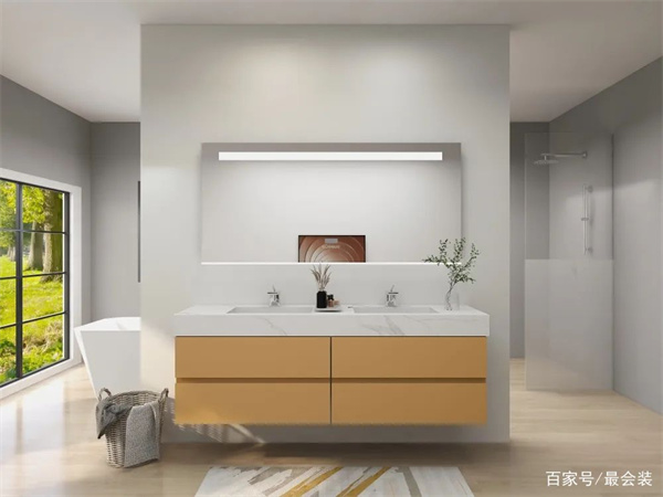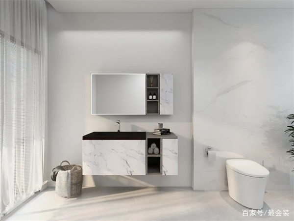 浴室柜最好选用储物强大的,通常女生的各种护肤品,小物件相对较多,如果没有一个很好的收纳空间,会显得卫浴间很杂乱。所以一个大储物空间且时尚美观的浴室柜是必不可少的。