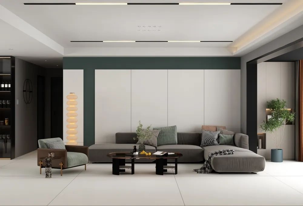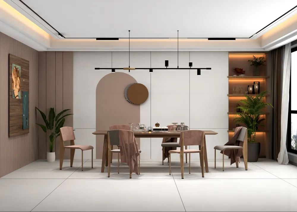 <月清白>的细哑面柔和质感非常适配奶油风设计所需的高级感,让单调的白色岩板瓷砖增添更多丰富的艺术层次,营造温馨舒适的居家氛围。