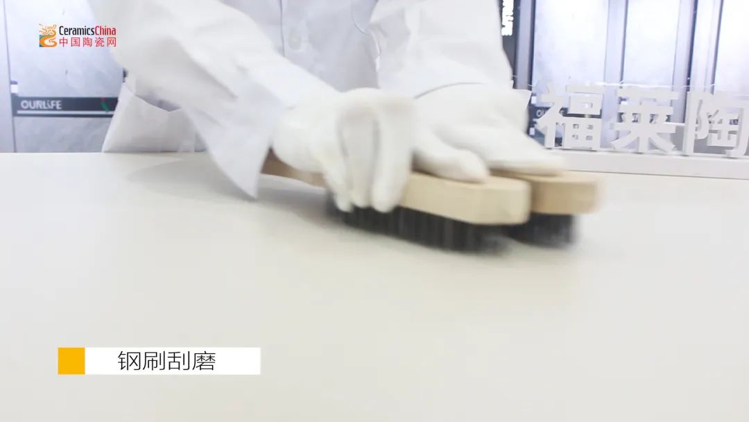 除了配色和质感,<月清白>岩板瓷砖还具备最让消费者无法拒绝的强大性能,防污耐磨、抗菌耐高温、防滑抗折……其耐用程度堪称装饰材料之最。为了验证其性能,中陶君带领专业测评小组对该款产品进行了全方位的检验。下面就是实验过程及结果,一起来看看吧!