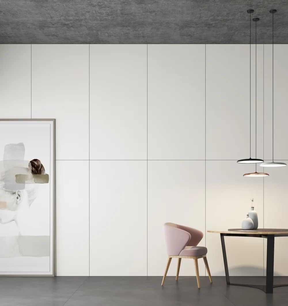 欧福莱<月清白>岩板瓷砖不仅百搭、颜值高,表面质感清透细腻,还拥有强大的物理性能,可用于客厅、厨房、餐厅、卧室、书房等空间的墙地面装饰。900×1800mm的白色岩板瓷砖,主流规格+百搭色系,轻松打造时下流行的侘寂、奶油、法式等装修风格。