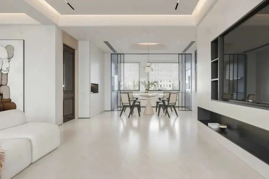 第二,光感不刺眼。柔光砖最特别的是通过降低反光率,达到人体视觉感受的舒适度,以及减少光污染的装饰效果。喜欢无主灯设计的搭配柔光砖,效果非常出彩,没有镜面反射不会刺眼。