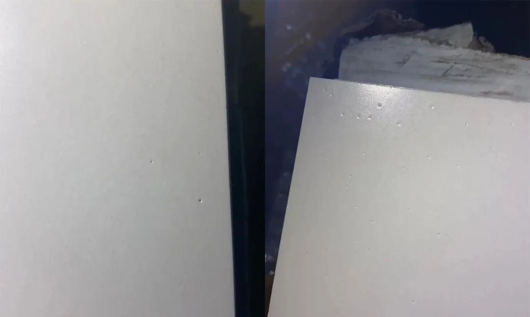 柔光砖孔眼多也是让很多消费者不敢跟风买的原因之一。一位消费者就遇到这种情况,他发现刚到手的柔光砖砖面上就有一颗绿色的小孔眼,仔细查看了之后发现小针孔不止一个,这种情况让她十分闹心。