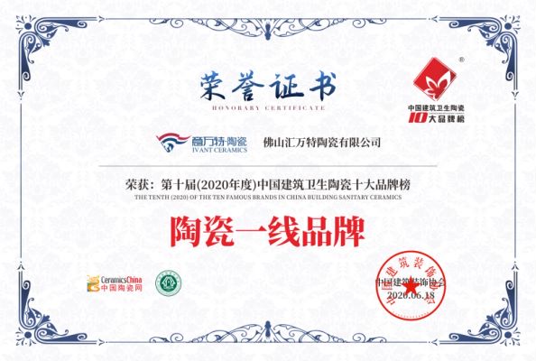 追求永无止境,创新谛造价值,意万特陶瓷始终坚持品质如一的同时,不断加大开发力度,产品系列更是不断推陈出新,品牌每年推出2大系列新品,一直引领行业趋势,新品系列涵盖了:“柔光素色、瓷抛铂晶大理石、超耐磨通体大理石、金伯利大板、七星级防滑、原石肌肤釉”等系列产品,企业的产品创新能力与品质的稳定性均经受了市场检验,2016年在中国陶瓷百强品牌评测活动中荣获“中国陶瓷品牌100强”,2017年荣获中国建筑卫生陶瓷十大品牌榜“瓷片十大品牌”,2018年荣获中国建筑卫生陶瓷十大品牌榜“大理石瓷砖十大品牌”,2019年荣获中国建筑卫生陶瓷十大品牌榜“大理石瓷砖十大品牌”,2020年荣获中国建筑卫生陶瓷十大品牌榜“陶瓷一线品牌”,2021年荣获中国建筑卫生陶瓷十大品牌榜“陶瓷一线品牌”,2022年荣获中国建筑卫生陶瓷十大品牌榜“陶瓷一线品牌”。